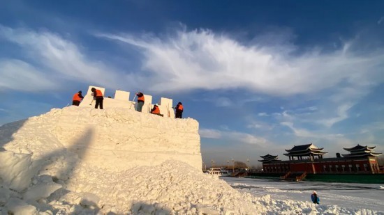 “乐”享演艺活动,园区内的万人演艺广场将举办黄龙府·太平雪韵演唱会,邀请齐秦、水木年华等11位国内知名艺人现场演唱,并策划互动泼雪嘉年华等特色民俗活动。国家级非物质文化遗产“黄龙戏”将在古风街区进行沉浸式展演,让游客感受地方戏曲的独特韵味。此外,冰上赛龙舟、冬季趣味运动会(含雪地拔河、接力赛、雪雕创作赛)等集体活动,将进一步提升游客的参与热情与沉浸式体验。